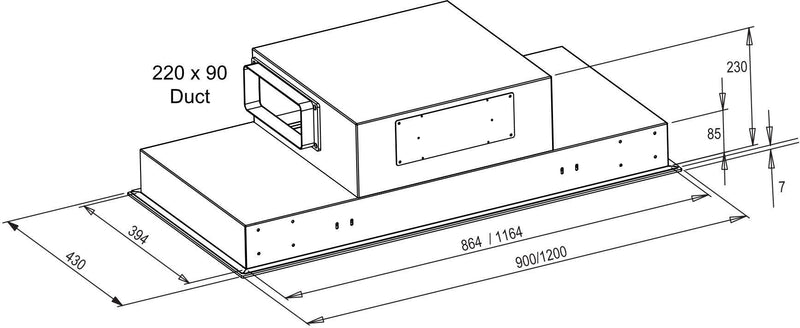 - Duct Size: 220 x 90 mm