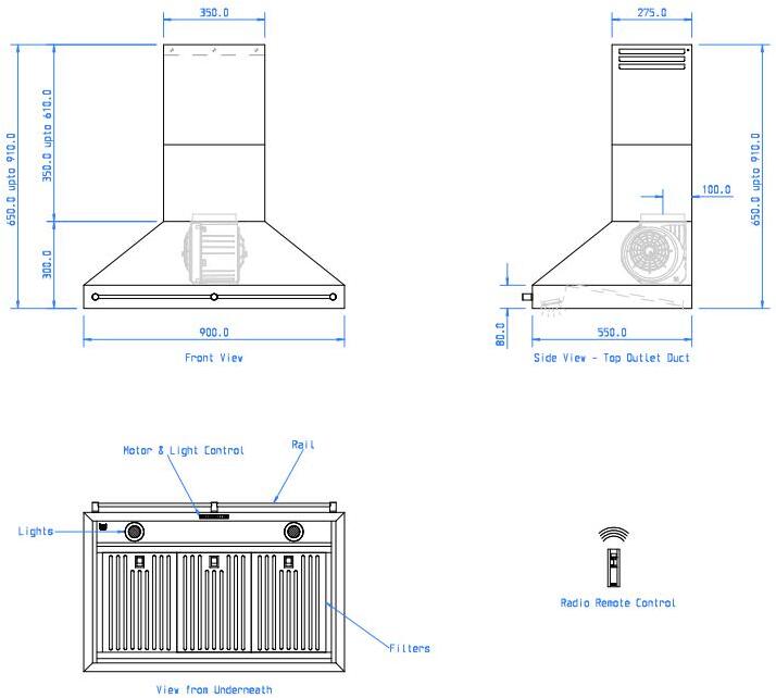 Westin Traditional Wall Mounted Hood With Internal Motor, 90cm – Stainless Steel