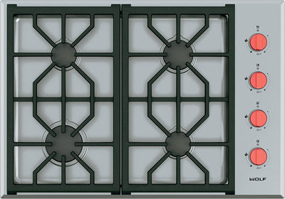 Our new line of professional gas cooktops is highlighted by signature design elements and performance features that have made Wolf a hallmark of chef-style kitchens. The 762mm professional gas cooktop offers four dual-stacked, sealed burners with a patented two-tiered design that gives cooks greater control over a wide range of heat output, from 5.3kW for restaurant-quality sears and fast boil times to a mere breath of flame for gentle simmering of sauces, soups and other delicate foods.