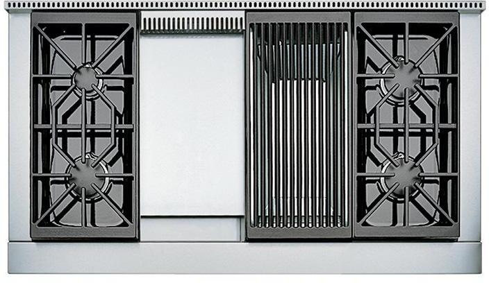 Wolf's ICBSRT484CG features a powerful 5.5kW gas griddle, perfect for cooking so many types of foods, from pancakes and breakfasts to prawns, steaks and stir-fries, along with a powerful 5.8kW gas chargrill, perfect for creating succulent steaks or fish and chargrilled vegetables. Four dual stacked sealed gas burners: 3 large burners offer a maximum of 4.6kW, reducing to .3 for simmering and 1 burner at 2.8kW max output, reducing to the merest hint of a flame at .1kW - perfect for melting chocolate without the need of a bain marie, or keepng delicate sauces warm.