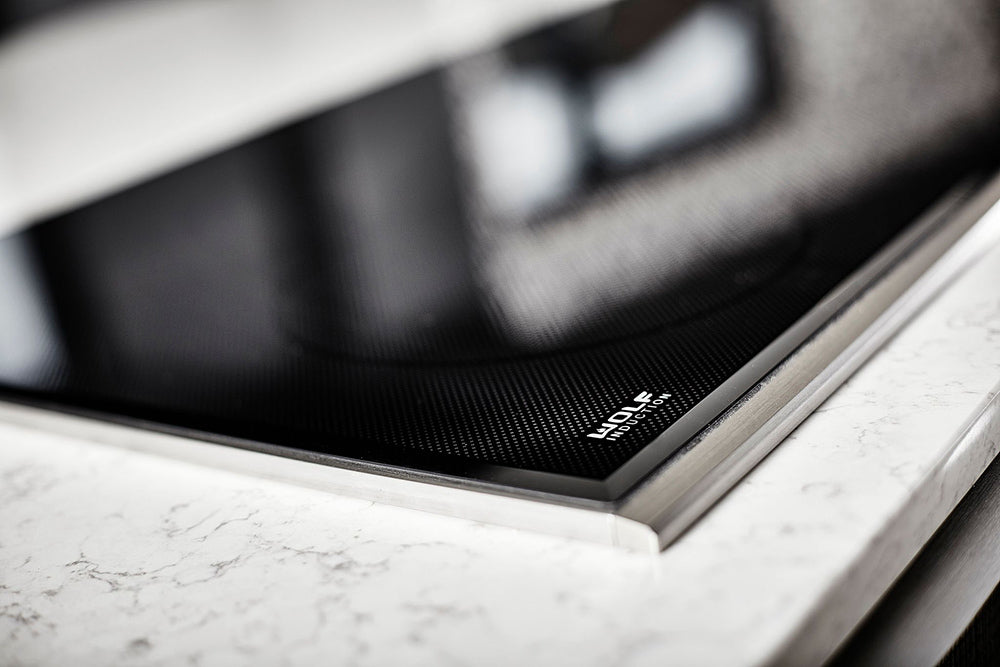 Wolf's new line of induction cooktops heats cookware instantly and delivers precise control at both high and low end, all on a cool, safe cooking surface. Sear, saute, simmer with complete confidence. Now offered in two distinct designs, four different sizing options, including a 91cm model with unique bridge feature that accomodates over-sized pots and pans. Induction cooking has been used for decades by professionals and homeowners demanding the best in performance. They are 90-95% energy efficient; as a result, no heat is wasted because energy is supplied directly to the cooking vessel. With Wolf’s framed induction cooktops the classic stainless steel trim co-ordinates with other Sub-Zero & Wolf appliances, while the subtly patterned glass design, hides any unsightly scratches. The ICBCI365T/S offers 5 highly efficient, low energy induction elements with unique bridging feature for even greater flexibility.