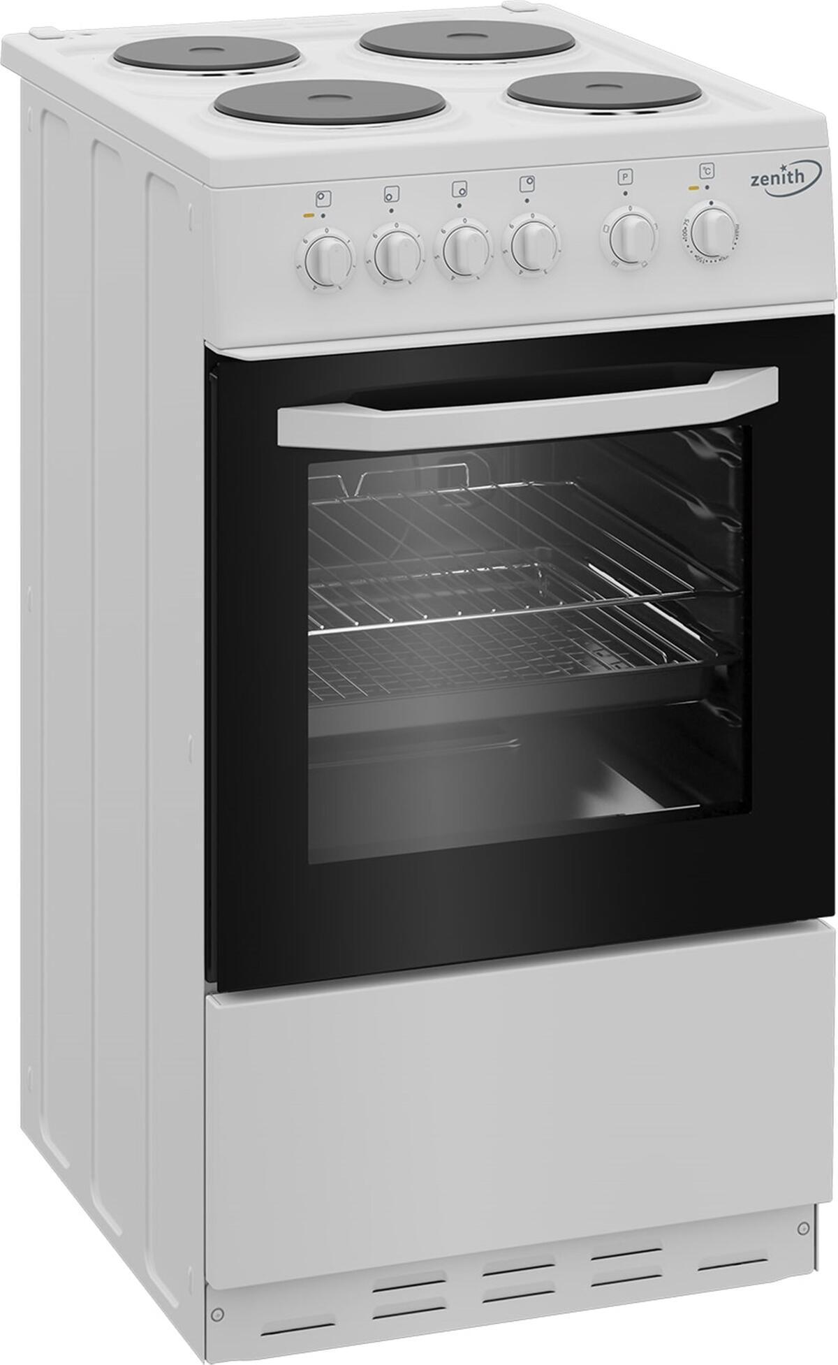 Bake, fry and grill to your heart’s content with this fantastic Zenith ZE503W electric slot in cooker, featuring a generous 60 litre oven and 4 solid plate cooking zones. The oven compartment features five shelf levels and comes equipped with a grill pan and oven shelf. The 4-zone hob has a variety of power outputs, ranging from 1 kW to 2 kW, and is large enough to accommodate a range of pots and pans. For cleaning convenience, the oven is lined with easy-clean enamel and the oven door is also removable if it requires a deeper clean.