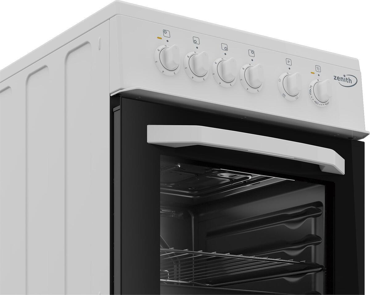 At the heart of the Zenith ZE503W is its conventional oven, boasting a substantial 60-litre net capacity. With five shelf positions available, it offers ample space and flexibility for cooking multiple dishes simultaneously. Whether you're roasting a chicken or baking a cake, this oven ensures even cooking and excellent results every time. Additionally, the fixed integral grill is ideal for adding a deliciously crisp finish to your dishes.